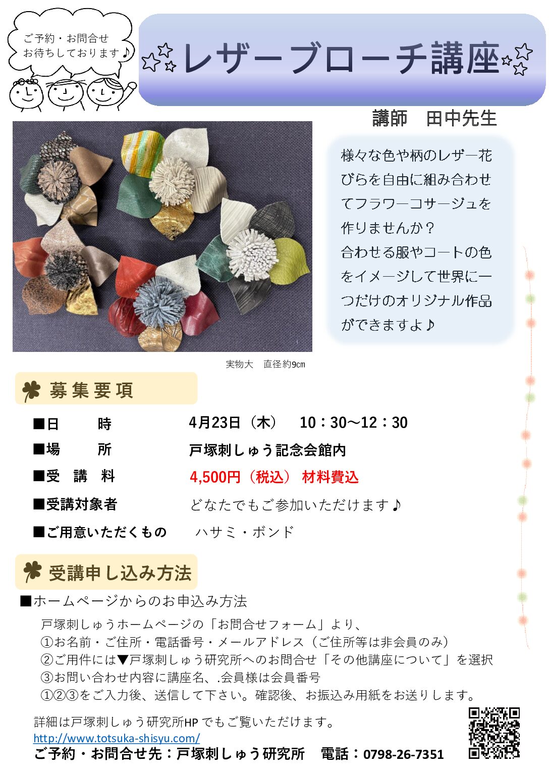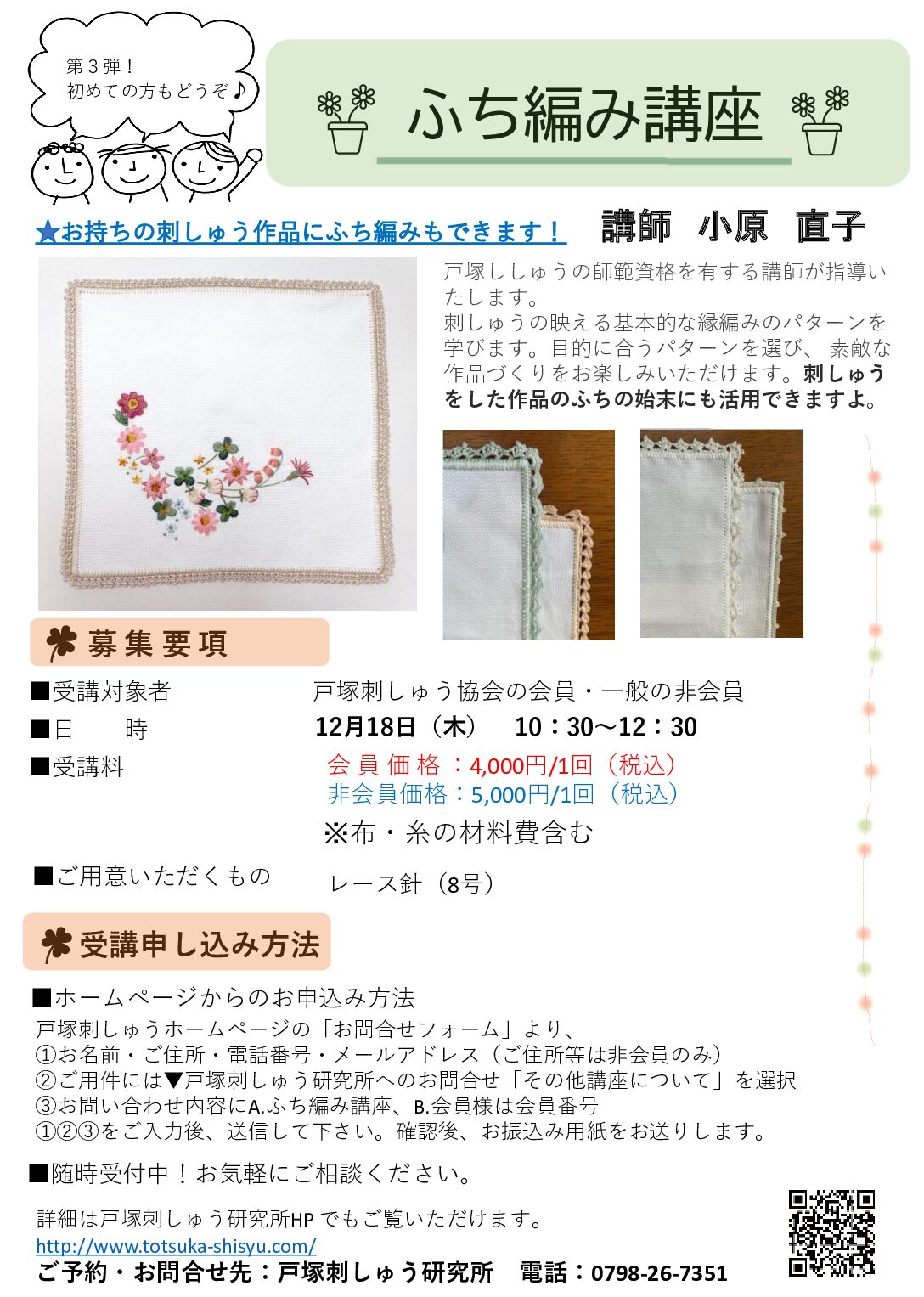 6-5-4F(戸塚刺しゅう記念会館内)【MAP】TEL:0798-26-7351