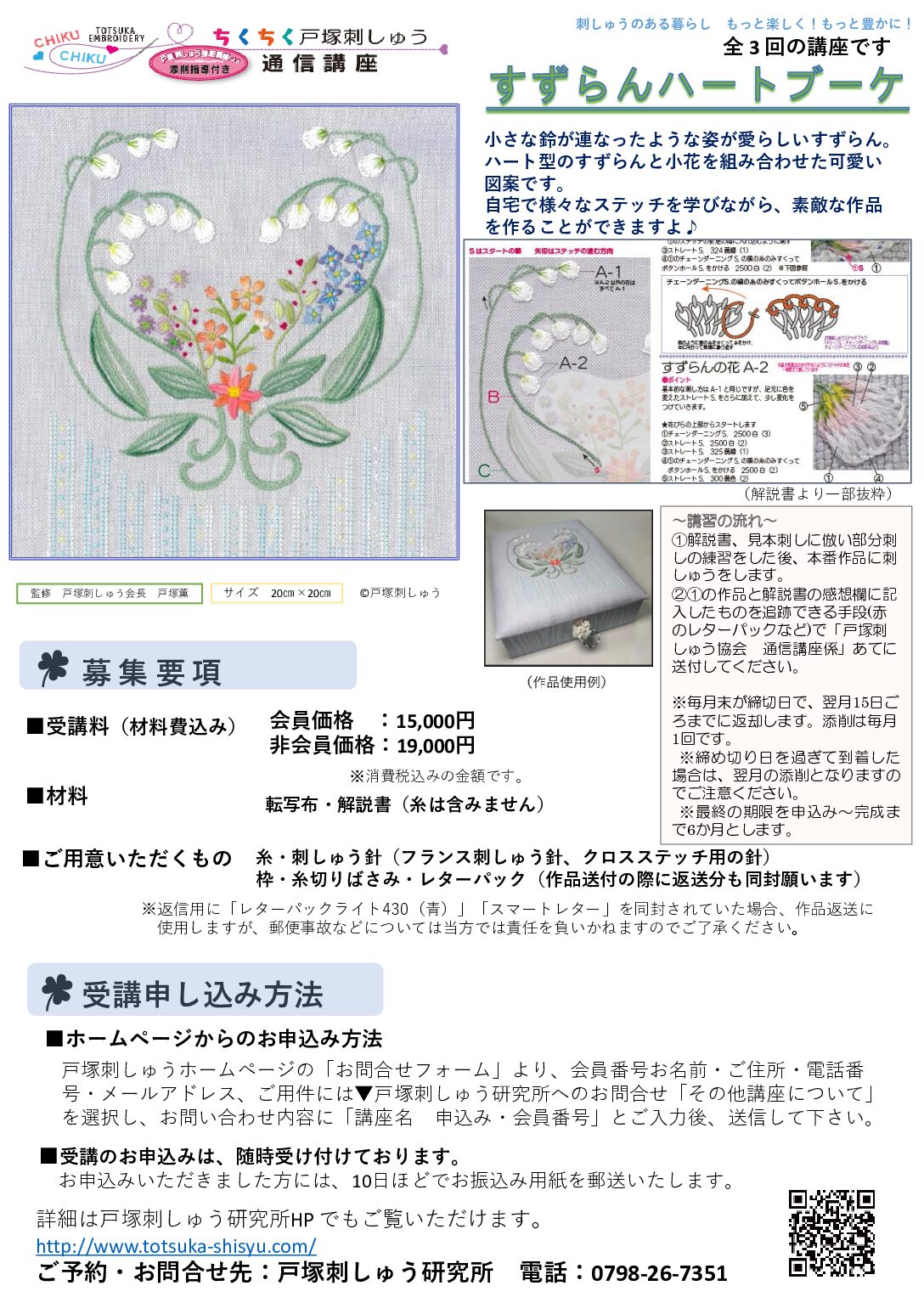 【ちくちく戸塚刺しゅう すずらんハートブーケ】   通信講座のご案内