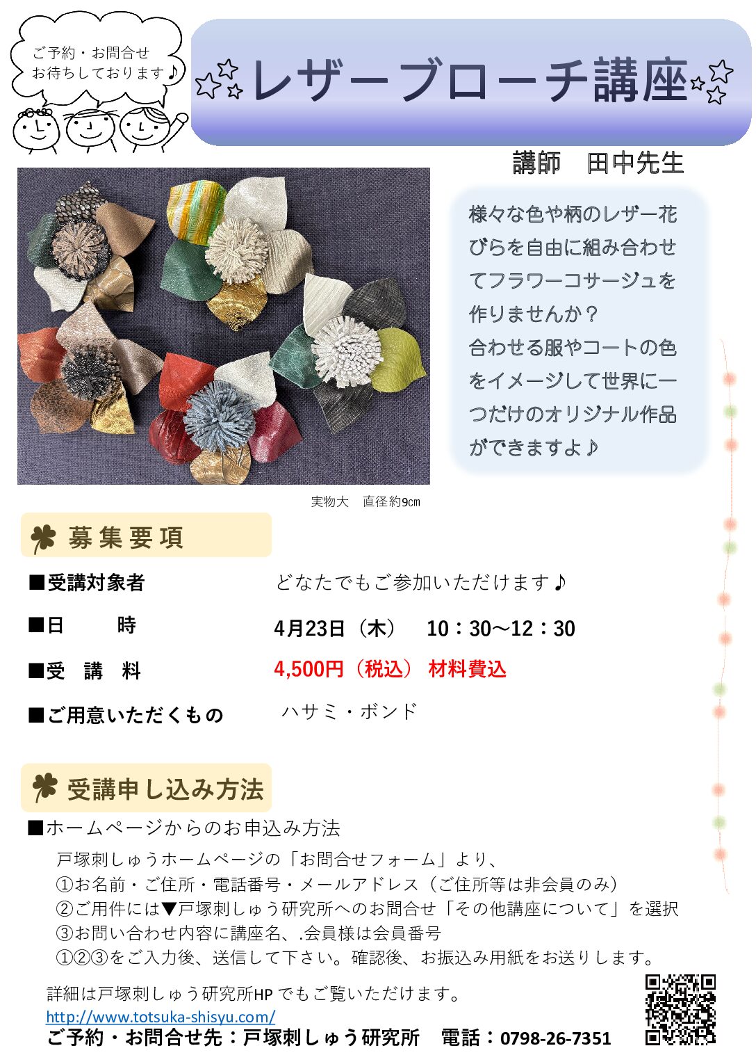 ♦ご予約・お問合せは戸塚刺しゅう研究所までご連絡下さい♦