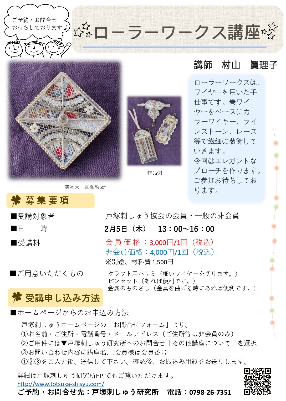 戸塚刺しゅう記念会館  【ローラーワークス講座のご案内】