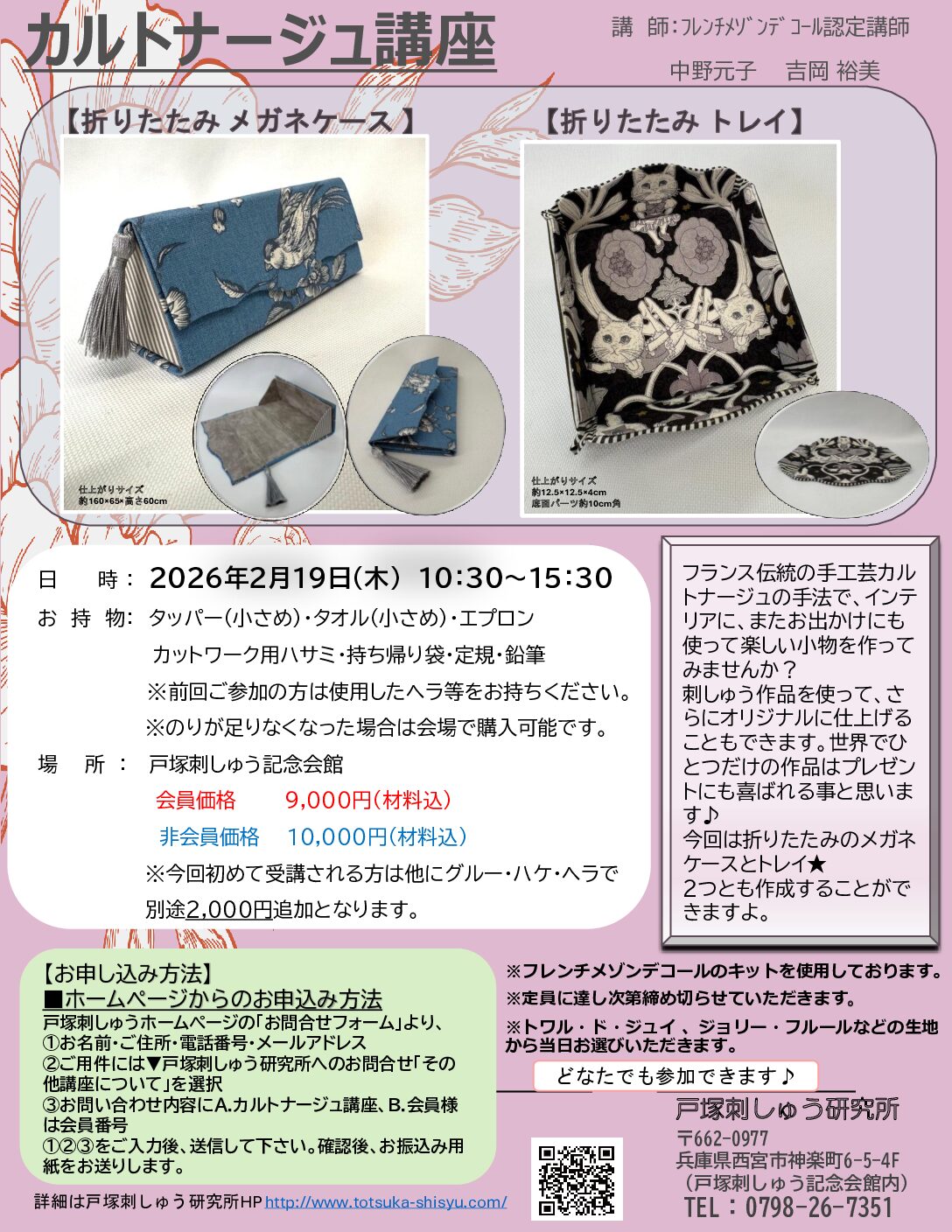 ♦ご予約・お問合せは、戸塚刺しゅう研究所のホームページか、お電話で連絡下さい♦
